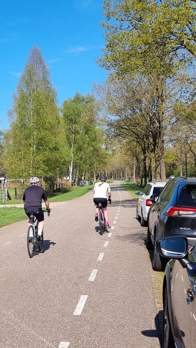 ** In de route van 72 km zit een stukje van 800 meter onverharde weg die minder geschikt is voor een racefiets. Je kunt dit stukje vermijden door de afslag naar De Ossenstal niet te nemen of kiezen voor de 70 km route, die gaat volledig over verharde wegen en betonpaadjes.
